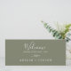 Este cabeçalho mínimo de folha verde escura é perfeito para um casamento de boho. A design apresenta uma simples silhueta verde-verde-verde em verde-oliva com o estilo minimalista da boêmia montanhosa. A placa impressão na frente e atrás (lado duplo). Verifique a coleção de placas de números de tabela de coordenação.