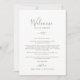 Estas cartas de boas-vindas e cartas itinerantes são perfeitas para um casamento elegante. A design apresenta uma simples silhueta verde-oliva em verde-oliva com estilo clássico minimalista. A frente da carta apresenta uma carta de boas-vindas e a parte de trás da carta apresenta o itinerário do casamento. Estas notas são perfeitas para casamentos de destino e bolsas de boas-vindas de hóspedes.