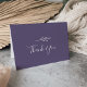 Este cartões de agradecimentos de casamento roxo de ameixa de folha é perfeito para um casamento de boho. O design de tom de joia apresenta uma simples silhueta verde de folha em uma violeta azul escura roxa com estilo boho minimalista. Personalize o dentro da placa com seus nomes e uma mensagem de obrigado. Como alternativa, deixe o vazio da seção modelo para enviar uma nota personalizada e ponderada em cada cartão após a sua chegada. Essas cartas podem ser usadas para um casamento, chá de panela ou qualquer evento especial.