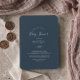 Este mínimo de chá de fraldas azul de folha é perfeito para um chá de fraldas elegante. A design apresenta uma simples silhueta verde em azul-cinza escuro com estilo minimalista clássico.