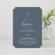 Este convite para o batismo azul de folha é perfeito para um batismo elegante para bebês. A design apresenta uma simples silhueta verde em azul-cinza escuro com estilo minimalista clássico.