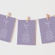 Estes cartões mínimos de lavanda pendurados são perfeitos para um casamento. A design apresenta uma simples silhueta verde de folha em púrpura lilás pastel com estilo minimalista de jardim boêmico. A placa impressão na frente e atrás (lado duplo).
