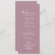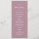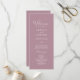 Este programa de casamento de madeiras é perfeito para um casamento de boho. A design apresenta uma simples silhueta verde folha em cor roxa romântica, cor-de-rosa, com estilo minimalista de jardim boêmico. Inclua o nome do casal, a data e o local do casamento, a mensagem do obrigado, a ordem de serviço, a festa de casamento e um memorial "em memória amorosa" opcional.