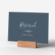 Este símbolo de folha azul de folha é perfeito para um casamento elegante. A placa tem dois lados (impressões em ambos os lados). A design apresenta uma simples silhueta verde em azul-cinza escuro com estilo minimalista clássico. Use estes cartões para reservar cadeiras ou mesas na cerimônia de casamento, recepção ou qualquer evento.