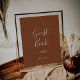 Este mínimo de poster do livro convidado de aterramento de folha é perfeito para um casamento de boho. A design apresenta uma simples silhueta verde folha em laranja queimado com estilo minimalista de boêmia do deserto.