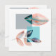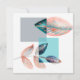 Design moderno com quadrados e folhas em cores cianas, vermelhas e laranja contrastantes.
