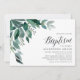 O convite para batismo chic apresenta folhas verdes de eucalipto e folhagem enxutas e ilustradas em rica aquarela. Personalize com sua cerimônia de batismo e detalhes de celebração alinhados à direita. Convites invertendo ao verde florestal sólido.