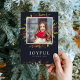 Cartões fotográficos magnéticos personalizados e acessíveis com modelos simples para personalização. Este design festivo apresenta uma borda floral em aquarela elegante com folhas de azevinho e flores de poinsettia em cores vermelha, verde e vinho em um fundo azul-marinho. Personalize-o com suas fotos e texto personalizado. O verso tem uma saudação de Natal personalizada ou use o espaço para adicionar fotos adicionais. Use as ferramentas de design para escolher qualquer cor de fundo, editar as fontes e cores do texto, fazer upload de mais fotos e criar um ímã de cartão de Natal com foto exclusivo.