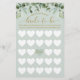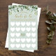 Jogo de chá de panela de Bingo Elegante e na moda. Jogo divertido para jogar na sua festa de chá de panela. Design apresenta um design moderno e estilo com nossa folhagem de aquarela pintada à mão e verde com uma grade de bingo de coração branco. A caligrafia elegante na cor dourada e a paleta verde-menta criam uma aparência moderna. Trabalho de arte por Moodthology Papery.