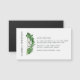 Folhas tropicais de cor aquosa verde e branca com cartões de visitas magnólias brancas.