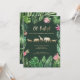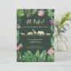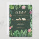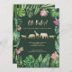 Folhagem tropical, flores cor-de-rosa e chá de fraldas de animais com efeito dourado. Folhagem de aquarela pintada à mão, texto de script e animais dourados fazem disso um tema divertido e moderno do chá de fraldas.