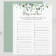Este jogo de chá de fraldas de raça de nomes de bebês de folhagem verde é uma atividade perfeita para um chá de fraldas moderno. O design apresenta galhos e folhas botânicas elegantes e desenhadas a aquarela, desenhadas à mão, em belos buquês e padrões geométricos.