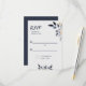 Folhas Azuis com Cartão RSVP de Casamento Dourado desenhado com folhas delicadas e suaves em tons de Marinho Escuro, Azul Claro e sotaques dourados. O texto inclui: RSVP, Responder por Data e espaço para os convidados adicionarem seus nomes. Para personalizar, basta inserir sua Data de Resposta no nosso modelo fácil, substituindo o texto de amostra. Certifique-se de visualizar todas as Folhas Azuis com a Coleção de Casamentos Dourados para partes correspondentes.