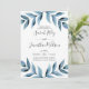 Convide seus convidados para o seu casamento com esta aquarela azul, convite com um simples fundo geométrico padronizado e uma tipografia moderna, escrita à mão. Há outros antecedentes disponíveis. © Mini Moi Impressões