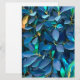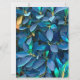 Um trabalho de arte digital vibrante com folhas exuberantes em tons ricos de azul e lacre com realces brilhantes. A design estilizada combina a natureza e a arte moderna, criando um visual sereno, mas dinâmico, perfeito para decoração de parede, impressões ou fundo digital.