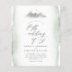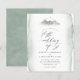 Ordenar Água Verde E Convite Para Casamento De Montanha. Se você está planejando comemorar seu casamento ao ar livre ou simplesmente amar verde e montanhas, este convite para o casamento será perfeito para você! Apresentando as folhas de aquarela verdes em volta de uma fonte de script chic, uma montanha, e uma ilustração de cabana logarítmica no topo com árvores. Os detalhes do seu casamento são exibidos na tipografia serif clássica colocada sobre um fundo de aquarela desbotado. Inverter para uma cor de água verde mais escura. Perfeito para casamentos rústicos ou casados por país.
