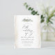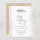 Orçamento Tan Watercolor Leaves e Convite De Casamento De Montanha. Se você está planejando comemorar seu casamento ao ar livre ou simplesmente amar verde e montanhas, este convite para o casamento será perfeito para você! Apresentando as folhas verdes de aquarela em volta de uma fonte chic script, montanhas e uma cabine logariteira com ilustração de árvores no topo. Os detalhes do seu casamento são exibidos na tipografia serif clássica colocada sobre um fundo de aquarela esmaecida e castanho. Inverter para um plano de fundo de aquarela correspondente. Perfeito para casamentos rústicos ou casados por país.