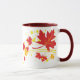 Folhas bonitas de ácer no outono em vermelho, laranja e amarelo e espirais.