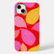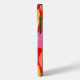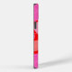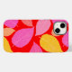 Folhas de outono. Folhas cor-de-rosa, amarela, laranja sobre um fundo vermelho vivo.