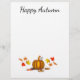 A papelaria do Autumn Leaves & Pumpkin faz uma maneira bonito de enviar newsletters, cartas para familiares e amigos e muito mais. A design apresenta uma abóbora rodeada de folhas de outono giratórias, com o texto em primeira leitura, "Feliz outono". Você pode personalizar o texto para ajustado em qualquer ocasião. Também faz um presente de excelente!