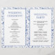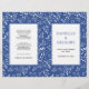 Deixa um padrão no programa de casamento dobrado em azul-indigo. Esta adorável design moderna mostra um padrão de folhas em branco em azul-indigo e seu texto em quadros brancos com borda recortada. Observe que você terá que dobrá-lo manualmente.