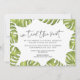 Tendy tropical design com palmas verdes e uma tipografia moderna manuscrita, ideal para um casamento na praia ou uma festa de verão.