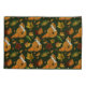 Raposa vermelha com abóboras, bolotas e folhas de outono num pano de fundo verde-escuro