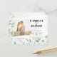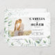 Um convite de casamento elegante e moderno que permite adicionar uma foto do noivado do casal. Apresenta uma imagem sobreposta com folhas verdes. Perfeito para casamentos com tema de folhagem verde. Campos de tipografia em ambos os lados e um código de leitura QR. Este convite de casamento tudo-em-um inclui campos de modelo de texto em AMBOS os lados, permitindo que você adicione sua cerimônia de casamento, recepção, RSVP, registro de presentes e informações de acomodação sem comprar envelopes e papelaria extras. Esta seleção garante uma alternativa de orçamento de alta qualidade, economizando dinheiro e sendo ecologicamente responsável. Menos folhas de papel equivalem a menos lixo! Você pode usar a ferramenta de TRANSFERÊNCIA para transferir este design para outros produtos ou acessar o serviço de DESIGNER AO VIVO GRATUITO da Zazzle através das opções no seu site para assistência criativa. Vale a pena notar que você pode incluir um código de leitura QR com este convite. Se você não precisar disso, basta remover a imagem ou substituí-la por um logotipo, gráfico, monograma ou foto. A Zazzle tem muitos recursos de personalização para ajudá-lo a ser criativo e projetar sua própria papelaria de casamento. Nossos convites de casamento são apropriados para todas as estações, incluindo verão, primavera, outono e inverno. Eles são ótimos para casamentos realizados ao ar livre, dentro de casa, na praia, em um celeiro, no campo, em uma montanha, em um lago, na floresta ou nos bosques. Aproveite sua aventura de planejamento de casamento, salve e