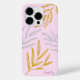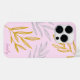 Apresenta folhas botânicas desenhadas à mão em folhas de ouro e prata simuladas, em fundo rosa. Personalize com um nome.