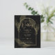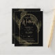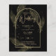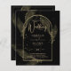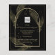 Apresentando um item de casamento de black tie formalmente suave com cores preto e dourado adornado com delicadas folhas de esqueleto douradas sobrepondo as bordas de uma moldura arqueada. Este design faz parte de uma coleção coordenada e inclui itens como cartões de RSVP, avisos de data, convites, sinais de boas-vindas, adesivos, guardanapos, programas, cartões de número de mesa, sacos de lembranças, menus e rótulos de garrafa de vinho, bem como uma variedade de tipos de cartões e papéis para se adequar a qualquer orçamento.