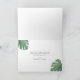 Este cartão de agradecimento moderno e elegante apresenta monstera aquarela, folhas de figo e folhas de vinha de pothos em verde sobre um simples fundo bege rosa e branco. A caligrafia moderna manuscrita em verde também é apresentada.
