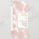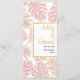 Folhas tropicais, cor-de-rosa e cartão de casamento dourado. Este design é bonito com folhas de Split Leaf Philodendron (Monstera deliciosa) ou de Queijo Suíço e folhas de palma, cor-de-rosa-claro, com contorno dourado. A sua redação está num quadro branco com contorno dourado.