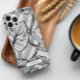 Folhas Tropicais Personalizadas de Preto e Branco é um elegante, moderno, padrão de folha de palma com sua inicial em uma letra de script e seu nome em uma fonte sans serif abaixo.