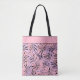 Este saco de tota de tamanho médio de na moda é mostrado em um design preto, cor-de-rosa pincelado e púrpura, impressão. Borda cor-de-rosa embutida no topo com borda de destaque preta. Personalizar este item ou comprar conforme projetado. imagem de estoque freepik.com