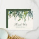 Lindo cartão de agradecimento com folhas verdes rústicas em aquarela sobre fundo bege suave. Adicione seu próprio texto