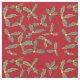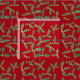 Prepare-se para costurar itens de Natal com bonito flores verdes ocas e amarelas em vermelho, tecido. O fundo vermelho é parte do design. Os grupos de folhas sagradas estão agrupados em um padrão no tecido. Esta design decorativa é de uma pintura que eu fiz.