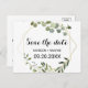 Esta folha verde tropical salva o cartão de data é perfeito para um casamento de destino. A design apresenta lindas folhas verdes pintadas à mão, enfeitando um quadro geométrico dourado.