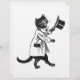 Uma caneta preta e branca vintage e desenho de tinta de um gato vestindo óculos e um casaco a tirar o chapéu de cima. Clique em Personalizar para adicionar seu nome ou mensagem.