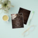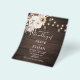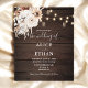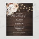 O convite de casamento ruidoso de Boho contém luzes de cordas, flores neutras e grama de pampa em fundo de madeira.