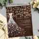 Diamantes brancos e brilhantes vestido de noiva em um fundo de madeira marrom-escura com cordas de luzes cintilantes fazer um moderno e elegante chá de panela de inspiração rustica PAPER FLYER. +++++++++++++++ adequado para festas de fazenda rustica no exterior ou no quintal. +++++++++++++++ LEIA ISTO ANTES DE COMPRAR! Este é um cartão de barato de orçamento impresso em um FLYER. +++ Observe que o PAPEL ORÇAMENTAL É THIN - Você pode fazer upgrade para que este cartão seja impresso no estoque de cartão +++ ENVELOPES NÃO INCLUÍDO. +++ Verifique todas as informações e ortografia do seu texto porque você receberá exatamente o que você vê - ninguém mais verificará nada antes de imprimir. +++ Esta placa foi projetada para o tamanho de 4,5" x 5,6". Caso você escolha outro tamanho do cartão e o texto saia da página, tudo precisa ser corrigido antes de adicionar o produto ao carrinho. Peça ajuda ao Serviço de Design ao Vivo.