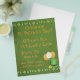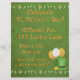 Folheto do Dia de São Patrício com balões, chapéu de duende e borda de trevo verde. Perfeito para convites de festas ou anúncios de eventos.