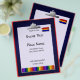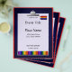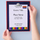 Um design gráfico de uma prancheta com giz de cera em um folheto de evento. O folheto tem modelos de texto para personalização.