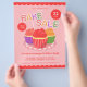 Folheto de Eventos de Caridade de Venda de assares com Cupcakes Coloridos, Tipografia Pontilhada de Venda de Assares Inserir e Pink Polka-Dot Fundo.