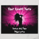 Folheto de festas com silhueta de uma fêmea cantando em frente a uma multidão de pessoas