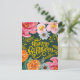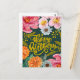 Linda mão pintou flores cor-de-rosa laranja e mostarda em um fundo verde escuro. Arte original de Caroline Bonne Müller