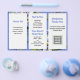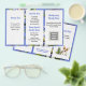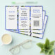 Folheto de pequenas empresas para personalizar de ambos os lados e dobrar em três. O fundo é azul-piscadela com imagem de flores apaixonadas. O texto é azul para os títulos e preto escuro para o resto. Cada lado deste papel de tamanho 5x8 tem três seções com modelos de texto. Inclua muitas informações sobre sua empresa. Adiciona também um logotipo, código QR e / ou foto nos espaços fornecidos. Se você não quiser usar um ou mais detentores de imagem, remova-a indo para a "ferramenta editar no design" que pode ser encontrada rolando até a parte inferior da área de personalização. Na área de design, escolha a imagem clicando nela e pressione o símbolo "lixeira" da imagem. Alterar o tamanho do papel pode alterar o design para não ajustado corretamente.