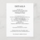 Papel de baixo valor de barato com peso de 80 lb, esses folhetos de detalhes de 4,5" x 5,6" apresentam suas informações em caracteres chicos em qualquer fundo colorido. Uma maneira perfeita de incluir informações extras de casamento para seus convidados. O Serviço de Design ao Vivo pode ajudá-lo com o layout, o tamanho ou o ajuste da cor, se necessário.