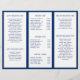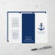 Brochura náutica tripartida com âncora com seu monograma e nome comercial no painel frontal. O painel traseiro tem suas informações de contato sobre a mesa e o painel da dobra interna tem dois cabeçalhos e caixas de texto. O dentro tem vários modelos para obter informações sobre sua empresa nos painéis externos e uma lista de preços no painel médio sobre o branco, cercado por uma borda azul do marinho. Este simples design é excelente para uma empresa de aluguer de barcos, fretamento de pesca, negociante de iates ou qualquer negócio náutico relacionado.