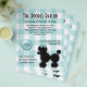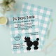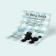 Folheto de excelente para marceneiros ou qualquer pequena empresa que cuida de cães, feito em turquesa e gingham branco, na frente e atrás. Gráficos bonitos de um poodle preto, no lado inferior direito, e um botão turquesa como tag, no lado esquerdo. O texto em preto está pronto para personalizar o seu negócio de cuidados para animais. O endereço de retorno, na parte traseira do folheto, está posicionado para ser usado como um correio triplo, apague este texto se você não desejar enviar esses folhetos.