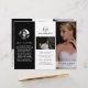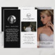 Folheto moderno de fotografia triplo dobrável que mostra suas fotos favoritas em um design elegante em preto e branco. O painel frontal tem uma foto que ocupa toda a área junto com duas linhas de texto sobre um banner transparente na parte inferior. O painel traseiro externo tem o logotipo da sua empresa e uma linha de texto acima de uma foto horizontal e suas informações de contato abaixo. Adicione seu retrato e sua biografia ao painel que se dobrará dentro do folheto. O interior tem uma imagem nos painéis esquerdo e direito junto com um modelo para informações à esquerda, seus pacotes no meio e uma lista de preços avulsa no painel direito. Este folheto triplo profissional é perfeito para um fotógrafo de casamento.